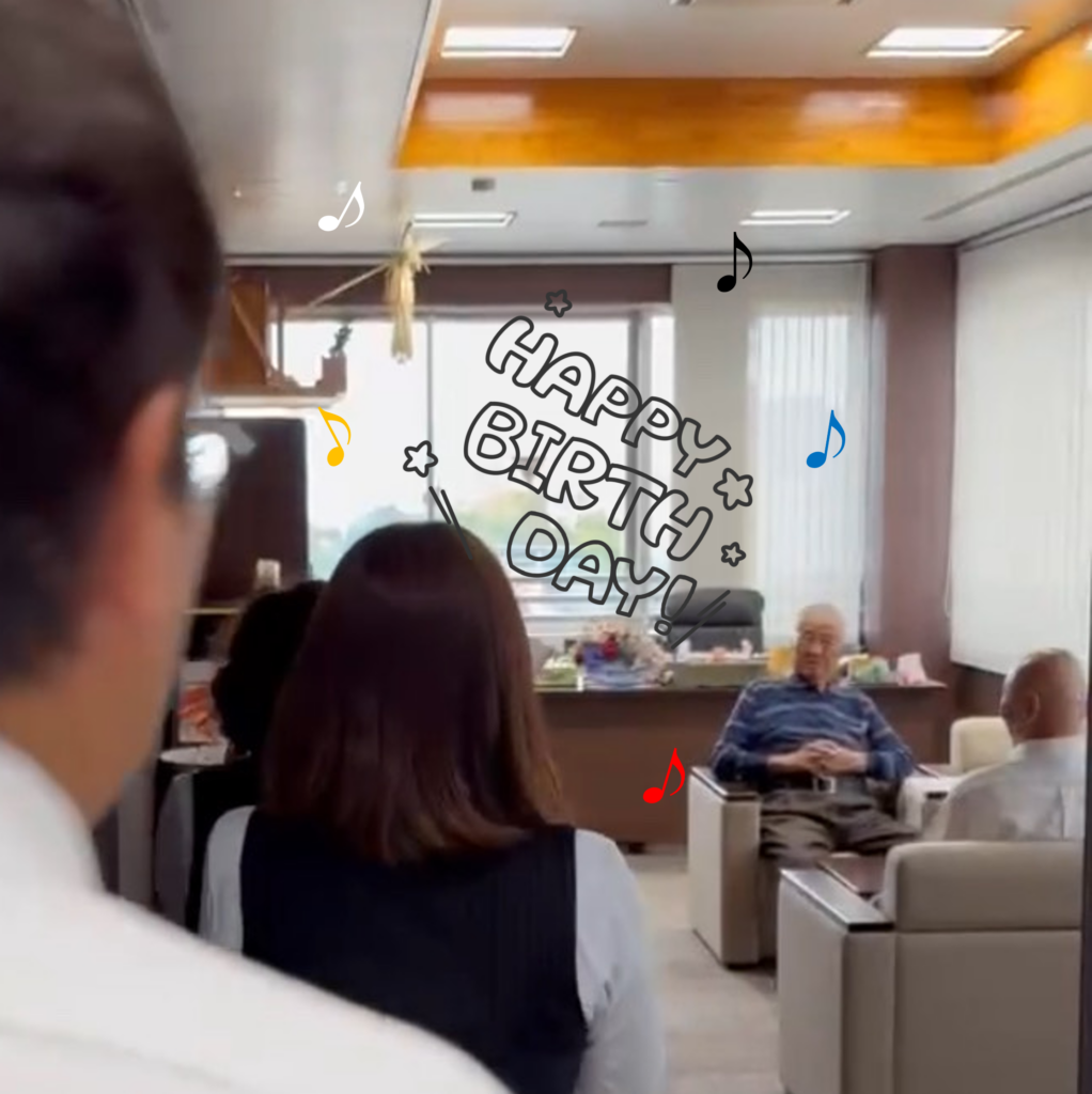 サプライズ決行日は、ハッピーバースデーを歌いながら会長室に突入!