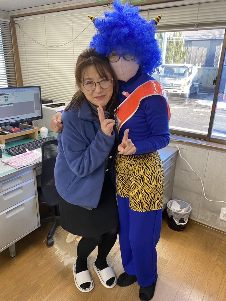 忙しい現場の中でも、思わず笑顔になる節分らしいワンシーン。