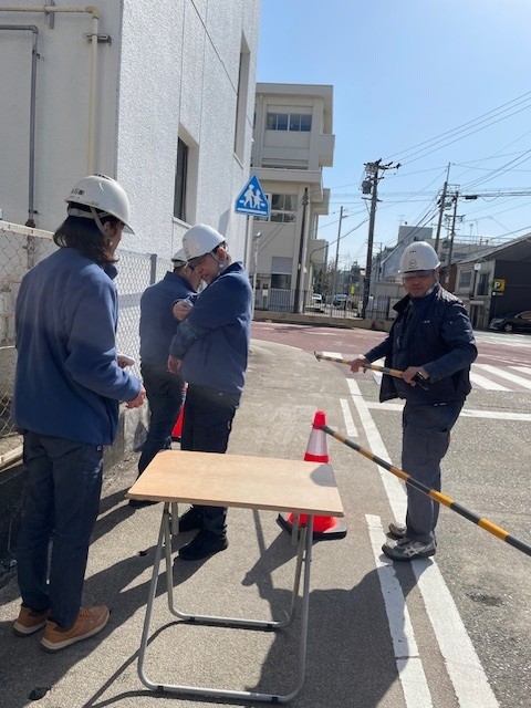 今回の工事は、警察署や消防署の前という場所での施工でした。